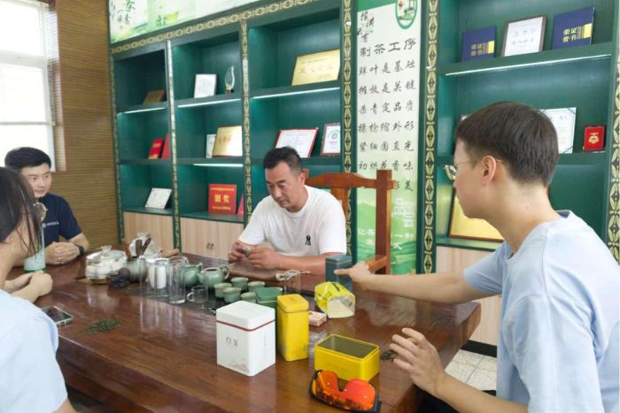 茶葉企業負責人龔長輝與實踐團交流后續合作事宜 唐禎悅攝