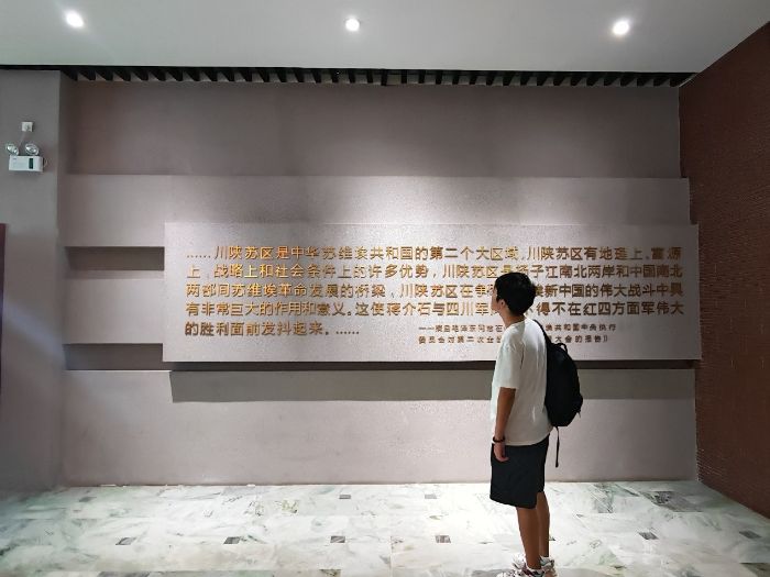 一踏入紀念館莊嚴肅穆的大門,一幅氣勢磅礴的大型紅色主題浮雕便以雷霆萬鈞之勢撞入眼簾。那遒勁有力的“赤化全川”誓言,如血染的戰旗,歷經歲月風霜依然鮮紅奪目,字字千鈞,叩擊心扉。浮雕上,紅軍將士們或持槍沖鋒,或振臂高呼,或相互攙扶,每一個堅毅的面容、每一個奮勇的身姿,都凝固著那段血與火交織的壯烈史詩。佇立于浮雕前,時間仿佛驟然倒流,耳畔依稀響起震耳欲聾的槍炮轟鳴、嘹亮激昂的沖鋒號角和戰士們視死如歸的吶喊。那份穿越時空的震撼,讓每一位成員都屏息凝神,深切體悟到革命勝利的基石,是由無數先輩用青春、熱血乃至生命一寸寸壘砌而成,其代價之沉重,成果之珍貴,令人刻骨銘心。