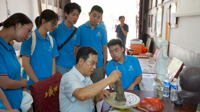 鳳翔泥塑非物質文化遺產傳承人黃忠祥師傅為隊員們現場展示了泥塑制作的完整工藝流程。從選土、和泥、捏塑成型到精細彩繪,每一步驟均凝結著匠人數十年積累的智慧與嚴謹專注的匠心。在黃師傅的悉心指導下,隊員們進行了泥塑制作體驗?此坪喖s的造型,實際操作卻對力道把控與細節處理要求極高。親身體驗讓隊員們深切體會到,每一件精美泥塑背后,都離不開匠人經年累月沉淀的深厚功底與追求極致的職業態度。這份對技藝的敬畏與精益求精的堅守,正是工匠精神在非物質文化遺產保護傳承實踐中的生動詮釋。