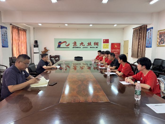 實踐收官日的交流座談會上,學子們帶來了覆蓋產業“創新鏈”與“環保鏈”的深度思考。他們首先提出核心構想:將具有抗菌等特性的“殼聚糖纖維”與絲綢混紡,以提升面料功能性。更令企業眼前一亮的,是他們針對生產痛點的“綠色方案”:“我們觀察到大量絲素廢料產生,建議通過生物提取技術實現高值化利用,既能緩解環保壓力,又能創造新收益。”周總經理對此表現出濃厚興趣:“廢料處理確是我們的痛點,你們的‘高值化利用’思路為廢料處理開辟了新方向!”對于學生們觀察到的自動化優化點,李部長也深表認同:“保品質、提效率,自動化升級是必由之路。”“材料創新”、“廢物高值化”、“智能升級”成為這場校企對話的關鍵詞。