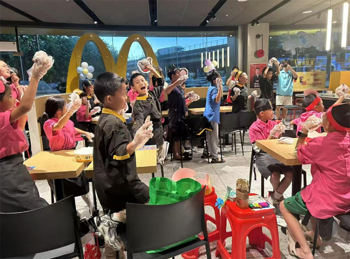 活動開始,孩子們走進麥當勞,開啟了充滿趣味與挑戰的職業體驗之旅。換上統一的工作服,他們化身為小小迎賓員、清潔員與服務員。在迎賓過程中,孩子們主動向顧客打招呼、引導就餐,從最初的羞澀靦腆,到后來能大方自信地與他人交流,有效鍛煉了人際交往能力;清潔崗位上,他們認真擦拭桌椅、清理垃圾,培養了良好的衛生習慣和責任感;而在服務顧客時,需要耐心傾聽需求、準確傳達信息,極大地提升了溝通能力與耐心程度。許多孩子表示,通過這次體驗,他們理解了父母工作的辛苦,也明白了每一份職業都值得尊重。