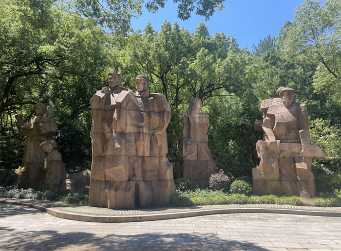 走出浙江省革命烈士紀(jì)念館莊嚴(yán)肅穆的大廳,高聳的紀(jì)念碑和凜然的雕像群更直接地撞擊著我的視線。初夏陽(yáng)光潑灑在花崗巖上,折射出冷峻而永恒的光澤,碑體上鐫刻的燙金大字——“革命烈士永垂不朽”——像一句沉甸甸的誓言,無(wú)聲卻震耳欲聾。