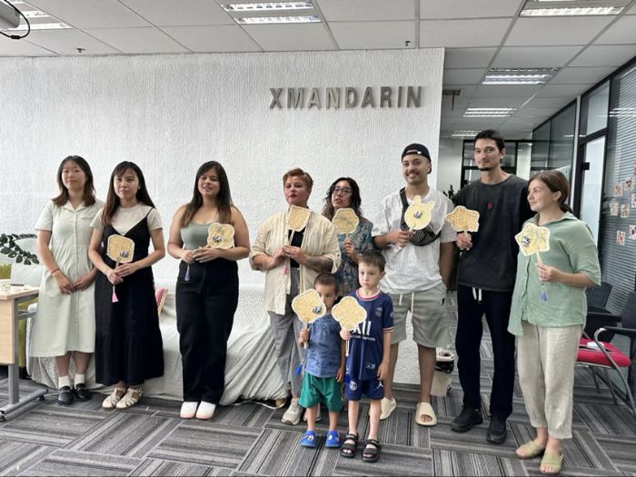 圖為外國學員們與竹編扇的合影。高川雲(yún)供圖