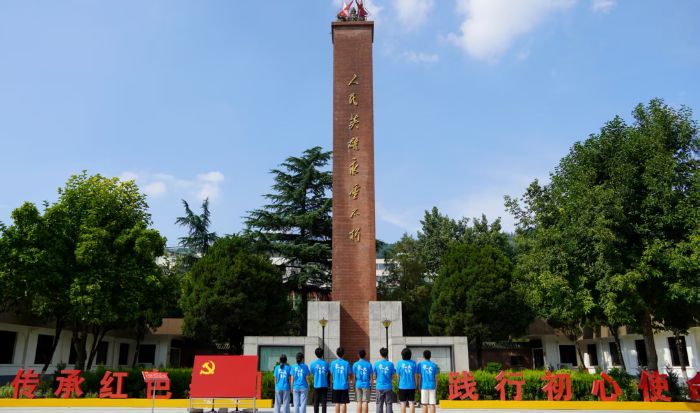 實踐團隊在烈士紀念碑前舉行悼念儀式并敬獻鮮花