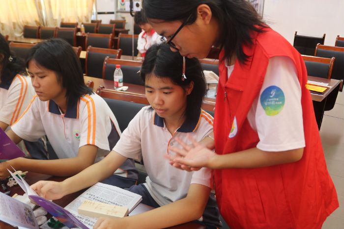 ▲圖為燎原隊隊員為學生對政策答疑解惑
