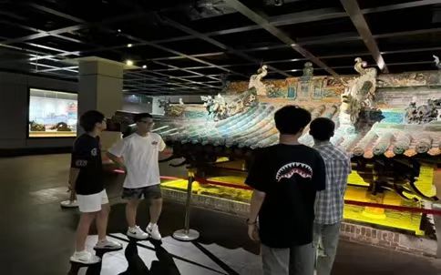 踏入介休博物館,成員們立刻被豐富的展品吸引。古樸的琉璃構件、精美的文物,生動展現著介休的歷史變遷與文化底蘊。在琉璃建筑展區,色彩斑斕、工藝精湛的琉璃屋頂、龍形飾件等,讓大家駐足驚嘆。這些承載著歲月痕跡的琉璃制品,不僅是藝術瑰寶,更彰顯著介休“琉璃之鄉”的輝煌過往。參與此次社會實踐的隊員們在欣賞之余,還嘗試從專業視角思考,探討傳統琉璃工藝與現代新能源技術結合,助力文化遺產保護、文化產業發展的可能性,讓歷史與科技碰撞出奇妙火花。