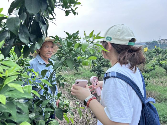 在政企合作方面,我們通過走訪陳家崗村村委會,成員對村委會干部陳林進行了深度采訪,全面且深入地探究當?shù)馗涕俎r(nóng)業(yè)生產(chǎn)對村民收入產(chǎn)生的深遠影響。他指出,要想實現(xiàn)柑橘經(jīng)濟的脫穎而出,就必須拓寬路子,找好點子,將企業(yè)和政策相結(jié)合,以政策扶持企業(yè),以企業(yè)帶動發(fā)展。在采訪過程中隊員們了解到,陳家崗村老齡化程度較高,缺少青年力量的注入。然而,村干部陳林指出,陳家崗村正積極探索產(chǎn)業(yè)發(fā)展新路徑。除了在村干部的帶領下,村民們大膽嘗試直播電商銷售模式,通過微商、淘寶以及抖音等平臺帶貨,成功打開了柑橘銷售的新渠道。