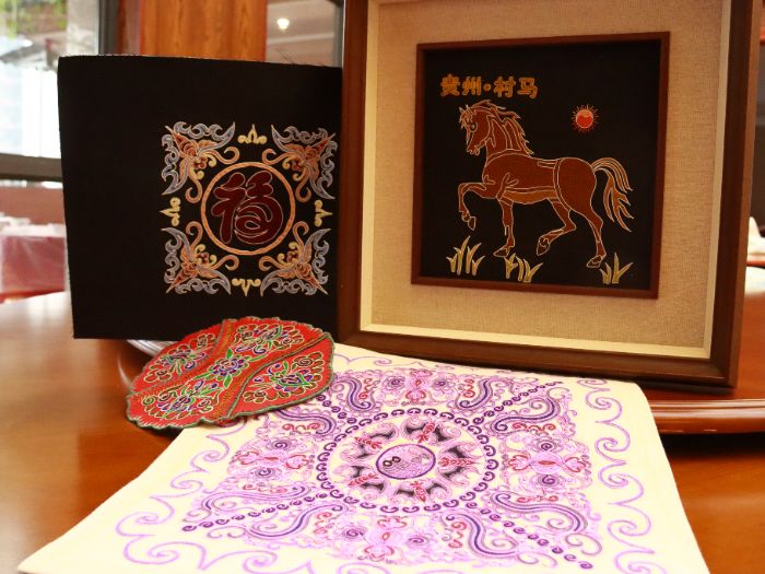 在水族馬尾繡服裝店,實踐團(tuán)隊和店主韋老師深入交流。韋老師作為一家水族馬尾繡服裝店經(jīng)營者,向志愿團(tuán)隊介紹了服飾的特殊性。傳統(tǒng)的水族服裝一般以各種綠色、藍(lán)色和棕色等幾個偏暗的顏色為主,到了近現(xiàn)代,融合其他民族文化與現(xiàn)代審美,開始出現(xiàn)粉色和紅色等鮮艷的顏色作為底色的衣服,飾有水族文字、魚紋、蝴蝶紋等,魚紋寓意年年有余,蝴蝶紋象征福運(yùn)不斷,蝴蝶的諧音是“福”, “吉”、“福”等水族文字刺繡傳遞美好祈愿。隨著時代的發(fā)展,服裝顏色也逐漸變多,不再像以前那樣忌紅、忌黃,常見的顏色也開始出現(xiàn)在大眾眼前。馬尾繡工藝從畫花、馬尾線圍邊到五股線填充,流程精巧,其呈現(xiàn)形式從背帶拓展至帽子、鞋包、首飾,隨時代煥新,成為水族文化“活名片”。繡紙工藝中,蝴蝶圖案借馬尾線、絲線,以特定針法勾勒“福運(yùn)”,圖案設(shè)計依物品場景靈動變化,盡顯水族獨(dú)特刺繡工藝智慧。無論是繡紙工藝中對線條方向的考究,還是馬尾繡在現(xiàn)代設(shè)計中的多樣化應(yīng)用,都體現(xiàn)了傳統(tǒng)技藝與現(xiàn)代審美的完美結(jié)合。這些工藝不僅是文化的載體,更是民族智慧的結(jié)晶。