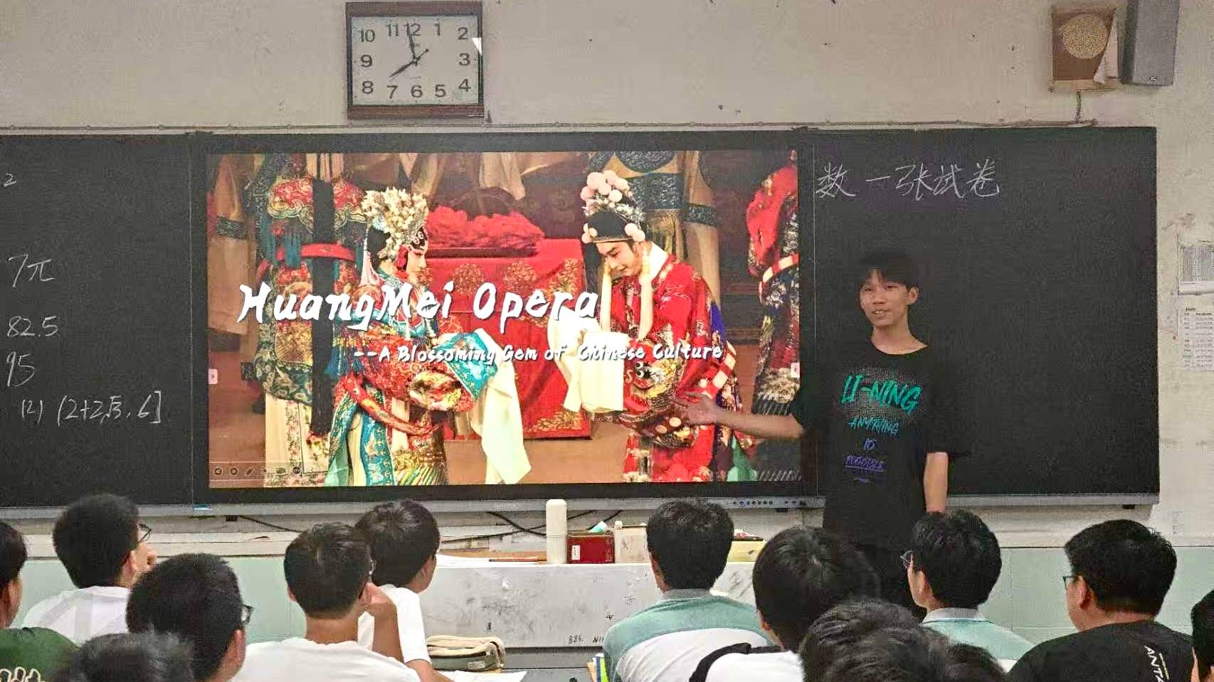 為讓更多年輕人了解并喜愛黃梅戲,團(tuán)隊(duì)第二站來(lái)到安慶市懷寧中學(xué),開展“黃梅戲”主題宣講活動(dòng)。考慮到中學(xué)生群體的特點(diǎn),團(tuán)隊(duì)精心設(shè)計(jì)了互動(dòng)式的宣講方案。活動(dòng)現(xiàn)場(chǎng),團(tuán)隊(duì)成員通過對(duì)黃梅戲的生動(dòng)講解、經(jīng)典片段賞析等形式將基本知識(shí)、表演形式和藝術(shù)魅力展現(xiàn)給同學(xué)們,在播放《女駙馬》選段時(shí),不少學(xué)生跟著輕聲哼唱,現(xiàn)場(chǎng)氣氛熱烈,學(xué)生們踴躍參與,這不僅是一次文化普及,更彰顯了青年大學(xué)生在文化傳承中的橋梁作用。
