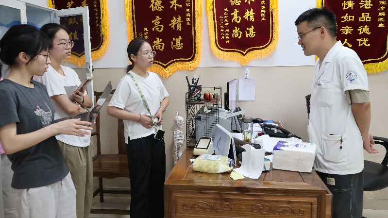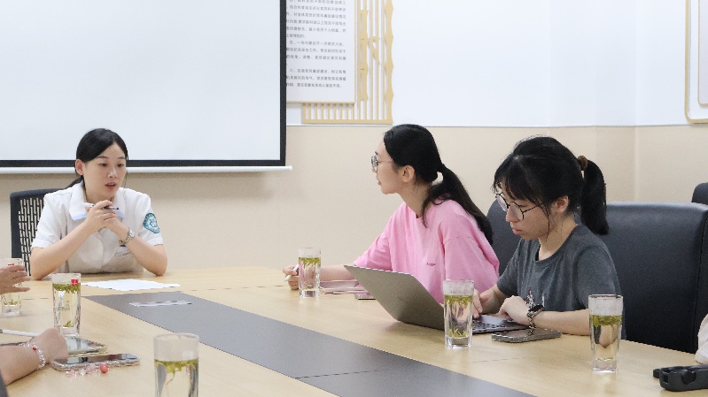 為了深入了解中醫藥的傳承與創新現狀,7月25日上午,團隊成員與孝源街道衛生院的王詩院長及中醫專家李鵬醫生進行了座談。