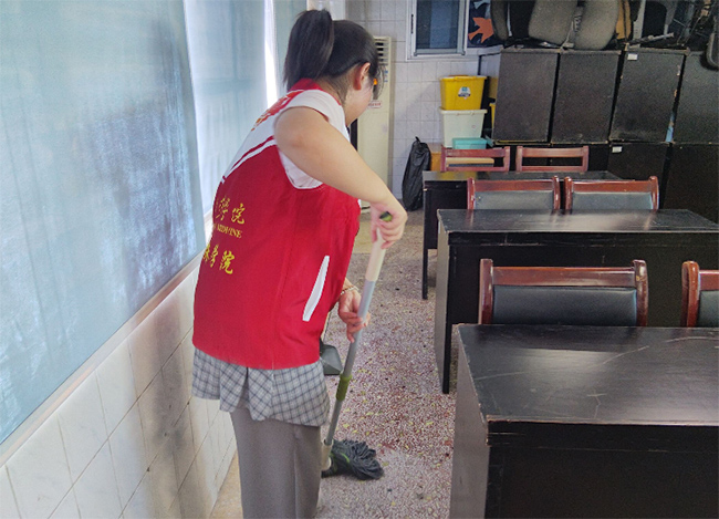 根據需求,隊員們分組行動,一組去幫忙整理要舉辦活動的禮堂,另外一組去幫助打掃活動室的衛生。