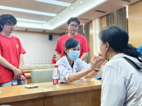 在義診環節,由3名專家領銜、8名博碩士研究生組成的服務團隊分設檢查區、咨詢臺與資料發放點。
