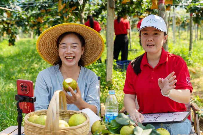 “鄉村振興,產業先行。只有把產業做起來,才能真正激活鄉村的內生動力。”在將軍紅山茶油公司,“將鄉小農女”王斌分享了自己扎根鄉村、帶動農戶增收的經歷,讓成員們深刻體會到了“新農人”的創新與堅守。隨后,實踐團與王斌前往七里坪鎮張石河村梨子園開啟直播帶貨,有效助力拓寬翠冠梨線上銷售渠道,為鄉村特色產業發展注入青春動能。