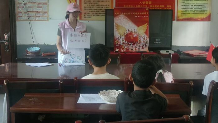 活動當日上午,村委會工作人員與志愿者共同搭建活動框架,先向參與兒童清晰介紹活動流程與內容。在民族文化小課堂環(huán)節(jié),實踐團隊以“漢語+布依語”雙語教學為核心,圍繞“你好”“謝謝”“再見”等基礎交際用語展開教學,同步結合情景模擬場景,幫助兒童直觀理解語言含義、加深記憶;課堂尾聲,還特別教授“各位同胞好”這一蘊含民族認同的表達,引導兒童感知民族文化內涵。