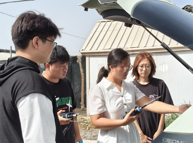 秋日的兵團(tuán)連隊(duì),日光溫室鱗次櫛比,棚頂在陽光下折射出希望的光澤。8月31日我團(tuán)隊(duì)建筑學(xué)、土木工程及農(nóng)業(yè)相關(guān)專業(yè)師生組成的調(diào)研團(tuán)隊(duì),走進(jìn)兵團(tuán)某連隊(duì)開展“溫暖桑田,智筑棚新”活動(dòng)。團(tuán)隊(duì)以“建筑技術(shù)賦能農(nóng)業(yè)生產(chǎn)”為核心,既深入勘測(cè)溫室建筑結(jié)構(gòu)的“科學(xué)內(nèi)核”,又細(xì)致傾聽農(nóng)戶的“種植心聲”,在理論與實(shí)踐的碰撞中,為學(xué)科教學(xué)積“現(xiàn)在棚外風(fēng)速0.38m/s,棚內(nèi)溫度32.9℃、濕度50.3%,我們來對(duì)比關(guān)閉通風(fēng)口和開啟通風(fēng)口時(shí)的參數(shù)變化!”在連隊(duì)一處采用“50墻+15°棚頂”的日光溫室前,手持風(fēng)速儀、溫濕度記錄儀,帶領(lǐng)學(xué)生開展對(duì)比實(shí)驗(yàn)。隨著通風(fēng)口緩緩打開,棚外微風(fēng)順著開口涌入,風(fēng)速儀數(shù)值在0.25-0.4m/s間波動(dòng),而棚內(nèi)溫度從32.9℃逐漸降至31.5℃,濕度從50.3%升至52.1%。累鮮活案例,也為農(nóng)戶優(yōu)化種植提供參考。