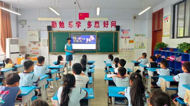 圖為宣講團成員在小學解讀錢學森、鄧稼先等先輩的奉獻精神,將科學家精神的種子深深播撒在童心中。王肇嘉攝