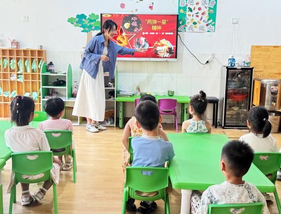 青春聚“核”、一“星”逐夢宣講團在山東省濰坊市壽光市上口鎮幼兒園開展“傳承兩彈一星志,弘揚民族奮斗魂”社會實踐活動;顒油ㄟ^故事講述與互動游戲,在幼小心靈中植入了愛國奉獻與科學探索的種子。