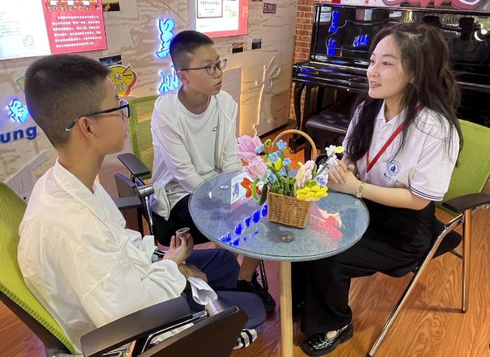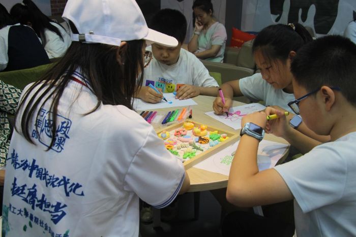 在“心情曼陀羅”繪畫活動現場,志愿者們化身心靈導師,引導孩子們用圖形與色彩編織內心世界。圍繞“我是誰”“未來的夢想”等主題,通過情緒詞卡游戲、故事分享、繪畫創作等環節,幫助孩子們識別情緒、釋放壓力。其中,一名小朋友在畫紙上用藍色勾勒出“宇航員”的夢想,他堅定地說道:“我要考北京航空航天大學,成為一名宇航員!”活動不僅提升了孩子們的專注力與表達力,更讓自信的種子在溫暖的氛圍中生根發芽。