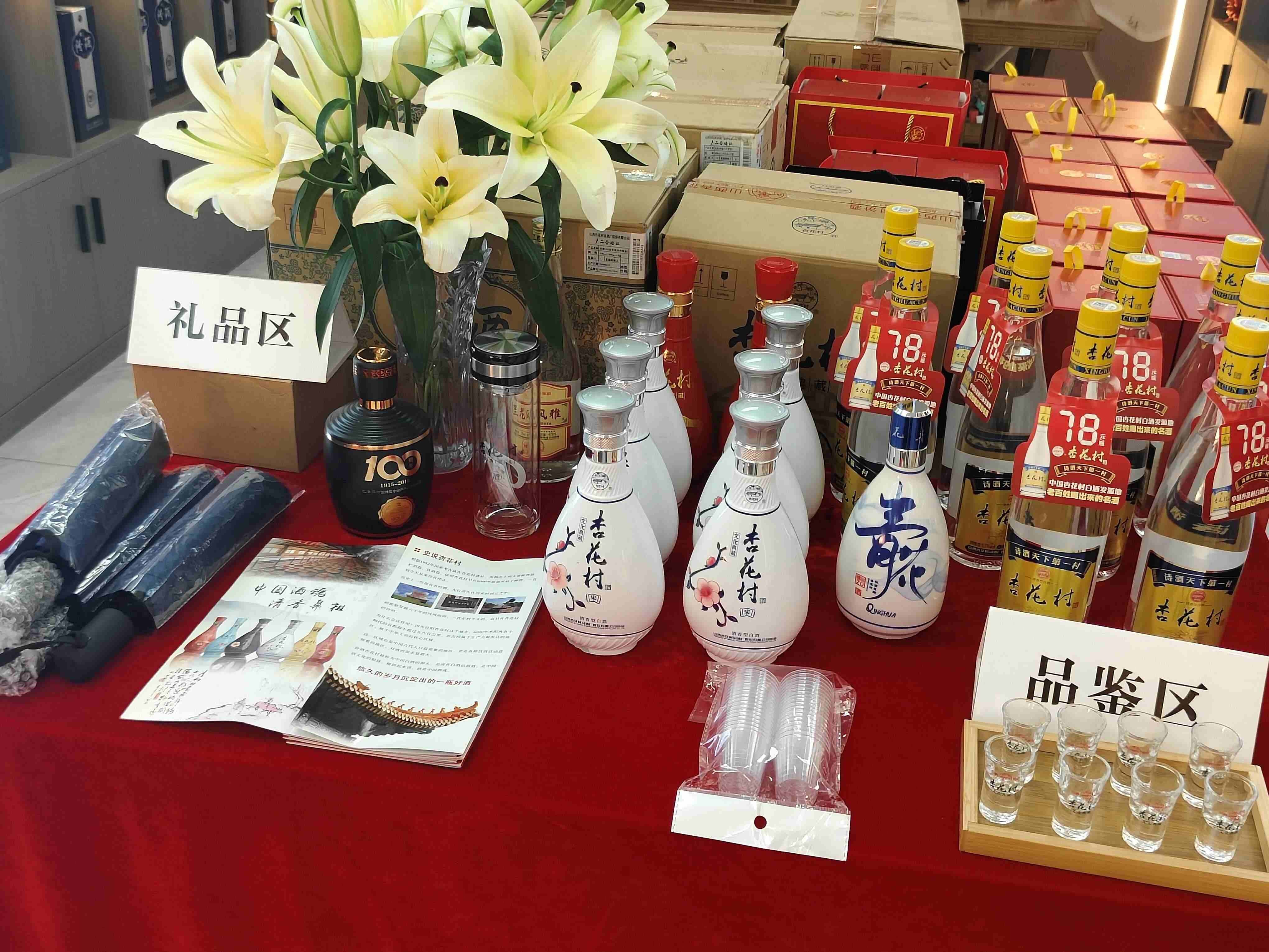 團隊接著來到了銷售點內的禮品區和汾酒品鑒區。這里陳列著不同系列、不同度數的汾酒樣品,從經典的青花系列到近年推出的文創小酒一應俱全。工作人員為隊員們依次介紹各款酒的特點——青花30年酒體醇厚綿柔,新推出的文創小酒則因度數適中、口感清爽更貼合年輕口味,隨后遞上分裝在小酒杯中的試飲品。
