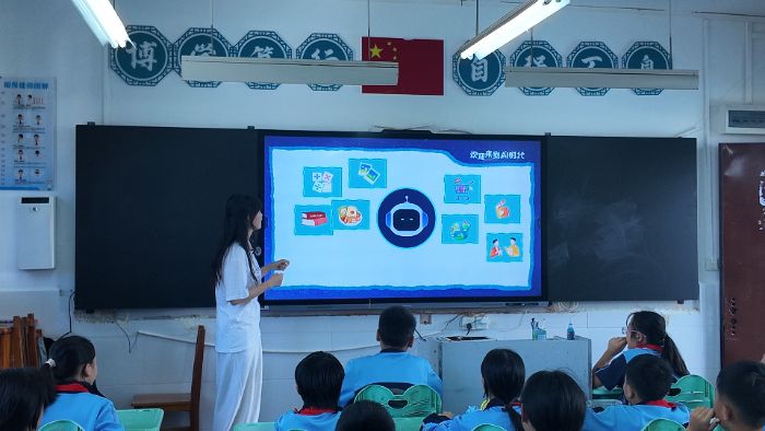 清晨的陽光灑進(jìn)花溪小學(xué)整潔明亮的多媒體教室,實(shí)踐隊(duì)員們以一段充滿科技感的AI介紹視頻拉開了活動序幕。隊(duì)員們從“人工智能是什么”這一基本問題出發(fā),用貼近孩子認(rèn)知的語言,配以動畫和實(shí)物示例,將抽象的技術(shù)概念轉(zhuǎn)化為一個(gè)個(gè)有趣的生活場景。他們講述了AI的發(fā)展簡史,從最初的圖靈測試到如今的深度學(xué)習(xí),再結(jié)合智能手機(jī)語音助手、掃地機(jī)器人、人臉簽到系統(tǒng)等常見應(yīng)用,讓孩子們恍然大悟:“原來AI早就就在我們身邊!”