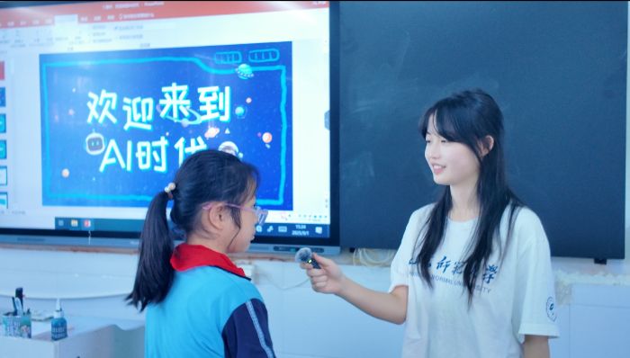在科普宣講課堂上,“智啟未來”社會實(shí)踐隊(duì)成員將前沿的AI知識以易懂有趣的方式傳遞給學(xué)生,引導(dǎo)他們在動手體驗(yàn)中感受科技奧秘,在交流討論中暢想未來可能。此活動不僅拓寬了孩子們的眼界,還培養(yǎng)了他們的創(chuàng)新思維和實(shí)踐能力,體現(xiàn)了高校服務(wù)社會、傳播知識的責(zé)任與擔(dān)當(dāng)。