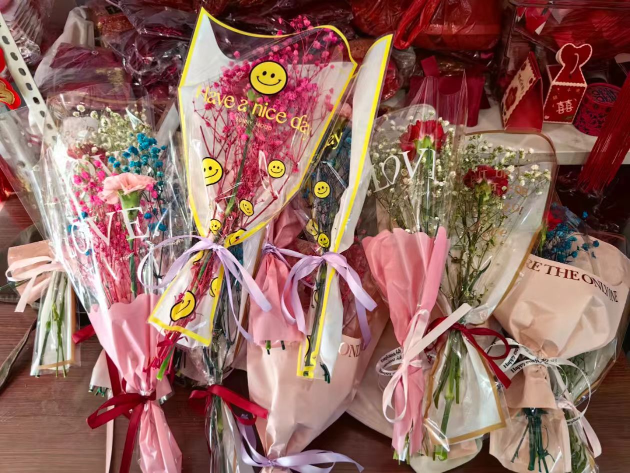 “陪伴是最好的禮物”,實踐團始終圍繞“豐富老人生活、深化情感聯結”的核心目標,將關懷融入日常、落在細微,而一場精心策劃的“鮮花贈長者”活動,成為傳遞溫情的首個暖心觸點。抵達養老中心次日清晨,隊員們便捧著提前采購的粉玫瑰,滿天星與向日葵走進院區——粉色玫瑰象征感恩,金黃色向日葵寓意暖陽,每束花都用淡雅的棉紙包裹,系著手工編織的粉色絲帶。“王奶奶,這束花送給您,愿您天天像花兒一樣開心!”“李爺爺,向日葵跟著太陽轉,就像我們陪著您~”隊員們俯身在老人耳邊輕聲問候,將花束遞到他們手中。老人們將花束小心翼翼地擺在床頭、窗臺,原本素雅的居室瞬間添了幾分生機,也讓初來乍到的隊員與老人們快速拉近距離。