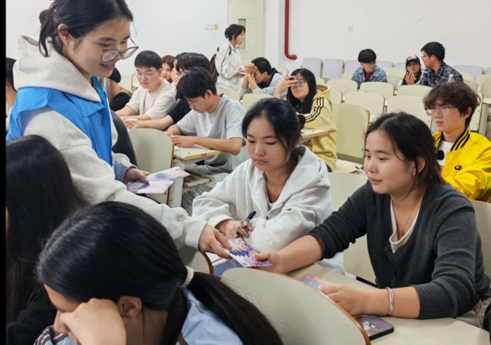 圖為志愿者代韋笑為同學們發放明信片。陳旭 供圖