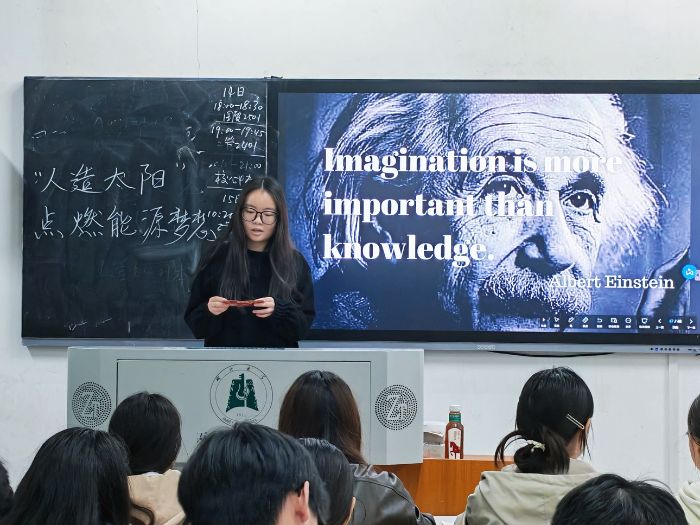 在互動體驗與思想碰撞后,主講人引用愛因斯坦的名言“想象力比知識更重要”引導同學們進入暢想環節,大家在特制明信片上寫下對未來科技中國的憧憬:“希望人類早日實現感知式交互”“愿人類在火星擁有第一座核能基地”……隨后,多同學主動走上講臺分享自己的暢想,其中工管2401班的唐同學手持明信片激動地說:“讓核聚變能源走進千家萬戶,讓每個家庭都用上清潔電力!”真摯的發言引發全場共鳴。