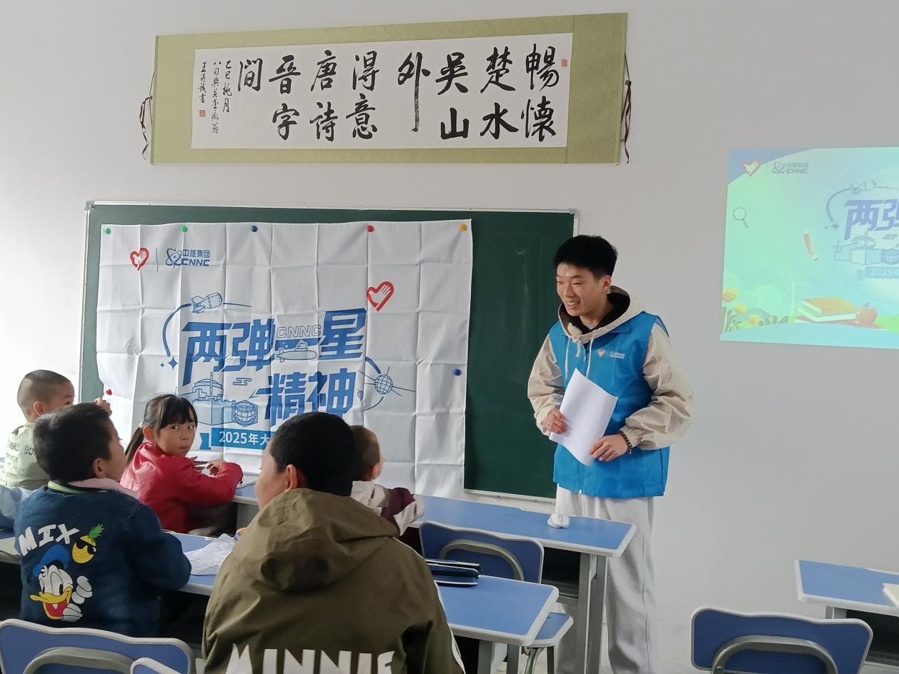 面向小學生群體,構建“宣講+科普”啟蒙樂園。 在榆中縣高墩營小學、夏官營鎮小學的課堂上,抽象的“兩彈一星”精神化為了生動的故事與斑斕的色彩。宣講團精心設計《童心繪功勛,星火代代傳》、《星火相傳,核你一起》等課程,通過動畫短片、科學家故事、趣味問答和“我心目中的功勛科學家”海報創作等環節,讓科學的種子在歡聲笑語中生根發芽。孩子們筆下蘑菇云下的歡呼、燈光下的算盤,正是“自力更生”、“大力協同”精神最純真而深刻的詮釋。