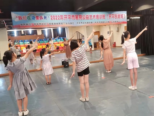 為了更加切身地體驗開平民歌的課堂,隊員們走進文化館的民歌興趣班,與學生們一起學唱民歌,并觀賞學生們的精彩匯演,感受開平民歌的曲調旋律之美。興趣班由民歌傳承人進行授課,旨在讓學生更直接、更全面地接觸與學習開平民歌。課堂上,學生們態度積極專注,營造了輕松融洽的民歌學習氛圍。學習民歌后,隊員們以日常對話的形式采訪了7名學生,學生們表示對民歌非常感興趣,未來也會一直學習下去。課后,隊員們還與2名家長進行了訪談。家長表示,民歌興趣班的開展是傳承非遺文化的一種較好的公益活動,為了讓孩子學習家鄉特色文化、增加自身特長,他們非常支持孩子通過興趣班的途徑學習民歌。民歌興趣班為學生帶來生動活潑、豐富多彩的課外課堂,提高了開平民歌與教育的結合程度,讓學生在輕松愉悅的氛圍中學會民歌、傳承民歌。