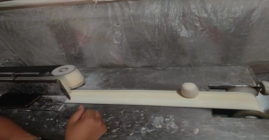 圖為實踐隊員在看顧機器和面的過程。在這個過程中,要時刻注意著面的軟硬程度,不宜過軟也不宜過硬,和出最適宜做饅頭的面。中國青年網通訊員 谷亞楠 提供