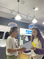 圖為實踐隊員向店內(nèi)員工發(fā)放有關(guān)復(fù)工復(fù)產(chǎn)的調(diào)查問卷,觀看產(chǎn)品示意圖,了解復(fù)工復(fù)產(chǎn)情況。中國青年網(wǎng)通訊員 馬越 攝