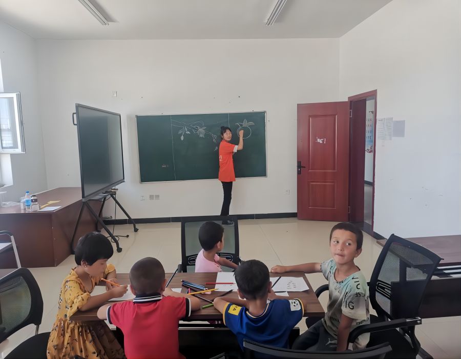 為了陶冶兒童豐富的情感,塑造兒童美麗的心靈。在7月7日,來(lái)自塔里木大學(xué)經(jīng)濟(jì)與管理學(xué)院的暑期三下鄉(xiāng)團(tuán)隊(duì)“追思隊(duì)”來(lái)到了第三師紅旗農(nóng)場(chǎng)五連,在此開展了“執(zhí)兒童畫筆,繪民族團(tuán)結(jié)”的系列繪畫活動(dòng)。