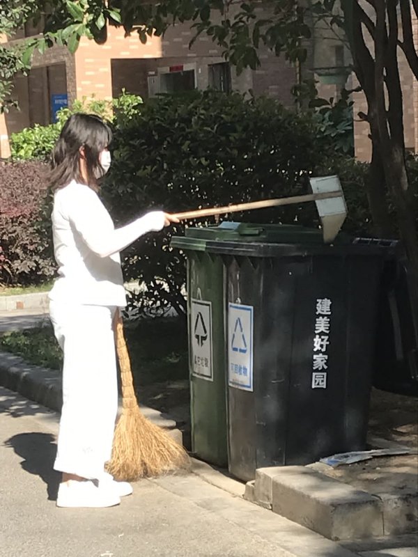 團(tuán)隊(duì)成員與小區(qū)物業(yè)取得聯(lián)系,與物業(yè)人員一同清潔社區(qū),共建美好社區(qū)。