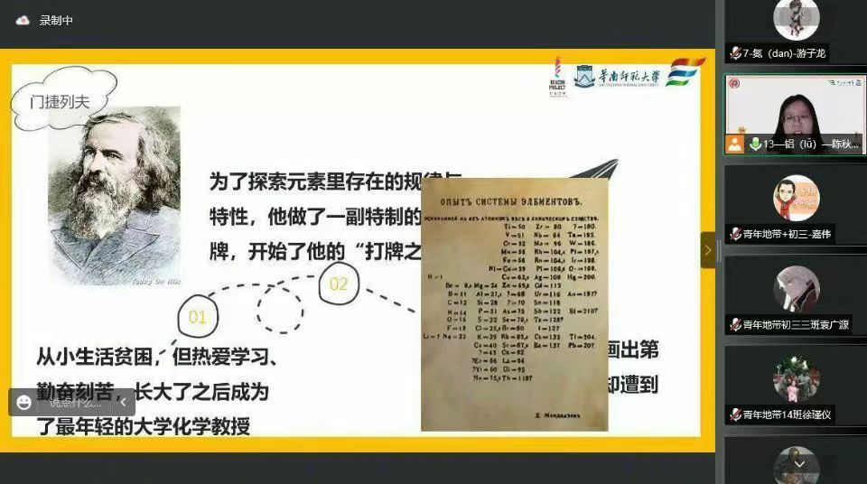 習近平總書記強調,從中華民族偉大復興戰略全局看,民族要復興,鄉村必振興。為深入貫徹落實習近平總書記關于實施鄉村振興戰略的重要論述,華師化院團委服務隊勇擔時代使命、積極主動作為,充分整合校內外資源優勢,以“立德效賢杏壇流芳,春風化雨筑夢鵬程”為主題,面向三市十余所中學開展線上線下相結合的趣味課程。此次線上課程主要面對肇慶市鼎湖區實驗中學、廣州市從化龍潭中學和廣州市海珠區“青年地帶”駐校項目的同學們,三方勇者集結,共赴化學異世界。