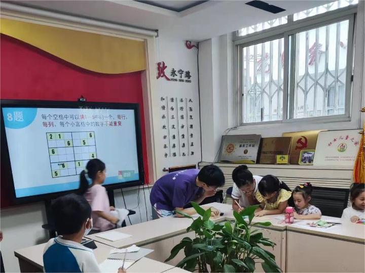 圖為實(shí)踐隊(duì)成員為孩子們輔導(dǎo)課堂作業(yè)“數(shù)獨(dú)”。多彩大學(xué)生網(wǎng)通訊員 謝思成 攝