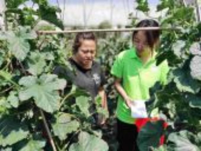 (圖片3:實踐隊隊員與村名了解采摘瓜果樂趣)
