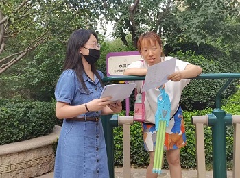 8月10日,山西省隊員帥涵悅在社區隨機找尋路人進行線下調查。通過前期制作的調研問卷更加深入地采訪居民對中國傳統文化的看法和意見。