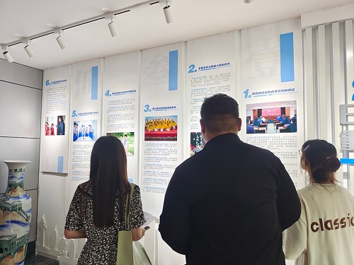 圖為實(shí)踐隊(duì)員閱讀日照市勞動教育工作成果。多彩大學(xué)生網(wǎng)通訊員 聶迦南 攝