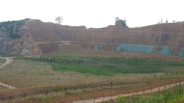 眼前調研團成員所看到的正是處于整治中的礦山。據徐主任介紹,目前礦山采取的礦山修復方法首先是邊坡治理,邊坡治理主要工作就是要穩定邊坡,該過程的任務是清除危石、降坡削坡,將未形成臺階的懸崖盡量構成水平臺階,把邊坡的坡度降到安全角度以下,以消除崩塌隱患。其次是對已經處理的邊坡進行復綠,使其進一步保持穩定。通過異地取土措施,將土壤覆蓋在礦山受損嚴重的部位,在土壤上種植植物,通過植物的作用,對受損土壤進行修復。