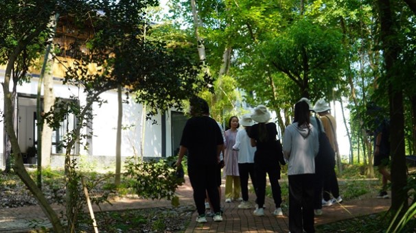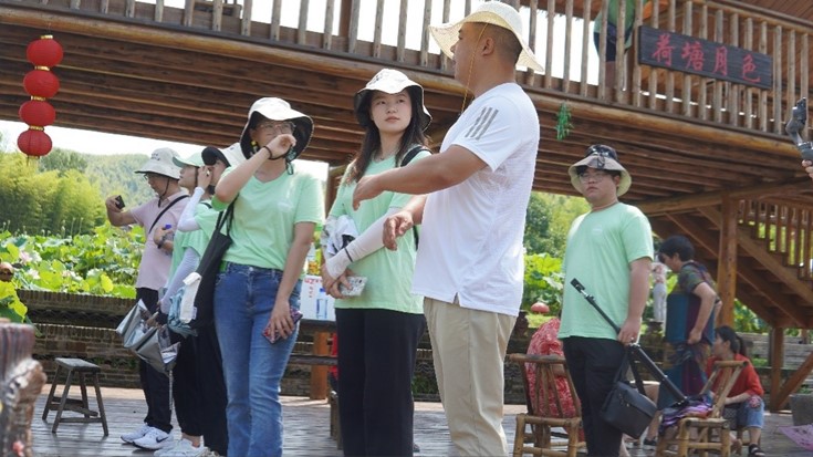 7月27日上午,調研團成員來到合興村,探訪“兩花經濟”如何帶領合興村民邁向綠色小康。在何聲山主任的帶領下,團隊成員參觀了荷花園和毛竹林。調研團成員了解到,合興村“兩花經濟”現在是新杭鎮發展生態旅游的一張重要名片。在過去,合興村有三千多人,大多數主要從事石材加工,雖然工資收入比較可觀,每天有500塊,但是環境污染以及對村民生活的影響都比較大。于是為了響應國家可持續發展的政策,政府在2018年關停了石材加工廠。開始摸索新的發展道路。合興借鑒了南京高淳荷花旅游模式,于是組織村民種植觀賞花以發展旅游經濟。