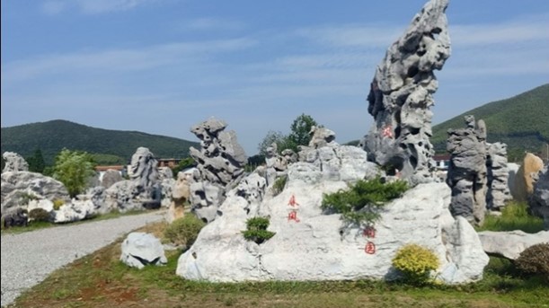 洪山村有豐富的礦產及太湖石資源及市場。調研團成員來到洪山村石場,令人印象深刻的就是馬路兩邊成排的景觀石。與民眾交流得知,這些景觀石都是礦山開采出來的,經雕刻加工后,放在石場待出售。