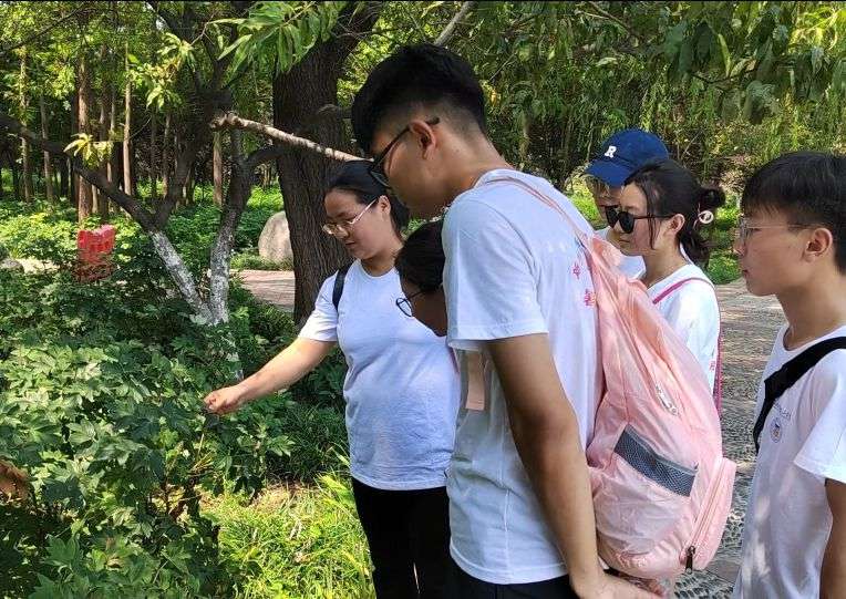 在位于植物園中北部的百草園收集了包括藥用植物柴胡、大黃、三七、白頭翁在內的等61個品種。在園區內大家一邊欣賞千姿百態的植物,一邊李彥靈老師為團成員細心講解藥用植物的形態特征、生態習性和藥用價值。社會實踐團成員收獲頗豐,學習專業知識的同時貼近大自然。隨后社會實踐團指導老師和成員在園區內用自己的專業知識志愿為游客科普植物知識,親身致力于中華優秀傳統文化的傳承。