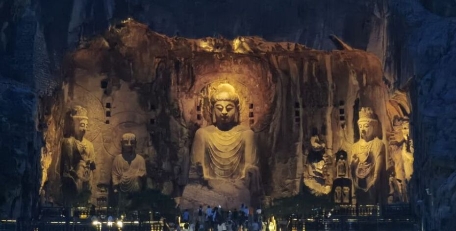 龍門石窟,夢回盛唐“若問古今興廢事,請君只看洛陽城”,“千年帝都”洛陽幾經興衰,最盛時當屬隋唐時期。龍門石窟,這座雕刻在石頭上的千古絕唱,便是盛唐氣象的最佳見證。龍門石窟始建于北魏孝文帝年間,盛于唐時,終于清末,是歷史上開鑿累計時間最長的石窟,與莫高窟、云岡石窟并稱“中國三大石窟”。在龍門石窟數以千計的像龕中唐代營造的約占60%。而奉先寺是龍門石窟唐代最具代表性的石窟。崖壁上的九尊雕像,不僅展現了古代工匠們精湛的石雕技藝,更彰顯了盛唐強大的國力。當實踐隊員們立于佛前,靜靜凝望,似乎可以想見大唐盛世繁華。