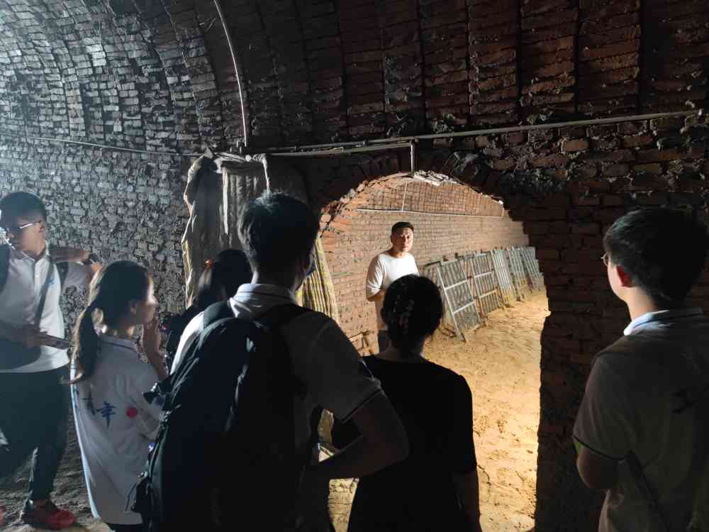之后,常經理帶領我們參觀他們所建造的窖藏紅薯的窯洞,窯洞是由紅磚在地底搭建,越往下走,溫度變得越來越低,好像一個天然“空調房”,窯洞面積巨大,由于紅薯保存對溫度有嚴格要求,所以在窯洞內部裝有溫度檢測裝置,與農場管理人員手機直接相連,及時提供預警信息,在窖藏窯洞上方安裝有風車以及大量鼓風機,可以及時調整溫度,使農作物得到科學合理儲存。
