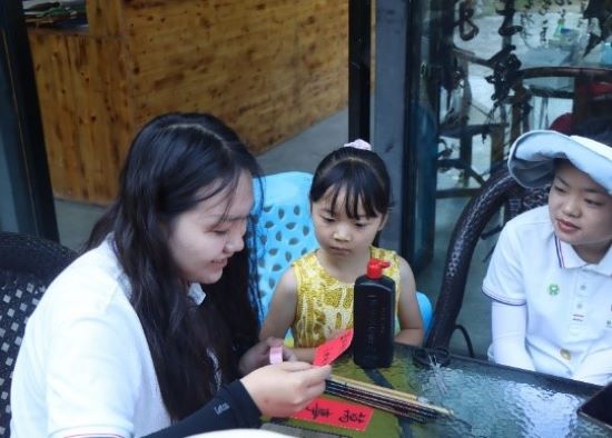 了解了書法藝術相關知識后,曲阜師范大學“星火傳遞 攜夢同行”社會實踐隊書法專業志愿者帶領同學學習書法技法相關知識,自己動手寫出作品,或者制作一張精美的書簽。字里行間無不透露出書法愛好者對于書法的熱愛。