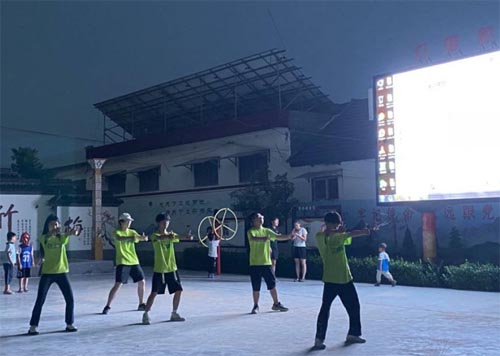 實踐團在村內廣場進行義務表演和宣講,吸引許多村民前來觀看。實踐團在第一書記網格員孫德忠的幫助下,在村內文化大舞臺以及燈塔影視放映屏幕進行節目排練及正式演出。首先,由實踐團隊成員蔡鈺龍、王萌、吳昊東帶來舞蹈串燒,王鈺衡帶來吉他彈唱,活躍廣場氛圍,將氛圍推至高潮。隨后,實踐團隊帶來精心準備的視頻“雞蛋豆漿一起吃真的‘1+1<2’嗎”。最后,由團隊成員趙利新、王鈺衡帶來食品衛生及營養知識宣講,為村民帶來歡樂的同時也宣傳食品安全有關知識。