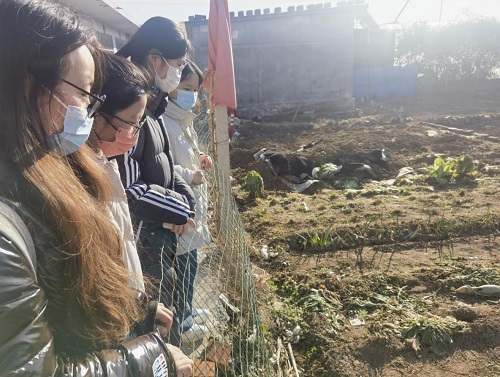 圖為實(shí)踐團(tuán)部分成員觀察閑置宅基地。中國(guó)青年網(wǎng)通訊員 李文青 攝