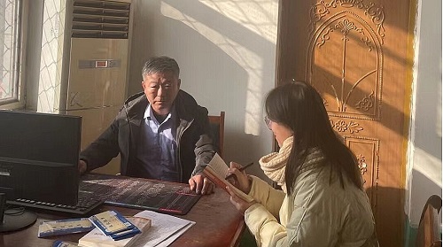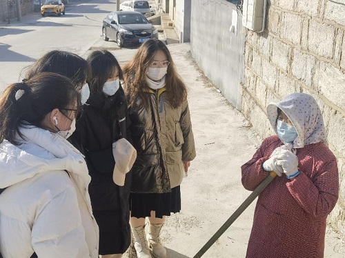 圖為實(shí)踐團(tuán)成員向村民了解家中宅基地信息。中國(guó)青年網(wǎng)通訊員 李文青 攝