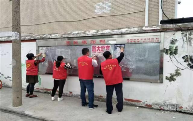 圖為青春獻黨志愿隊隊員清理垃圾廣告。 通訊員 孫雯萍 供圖